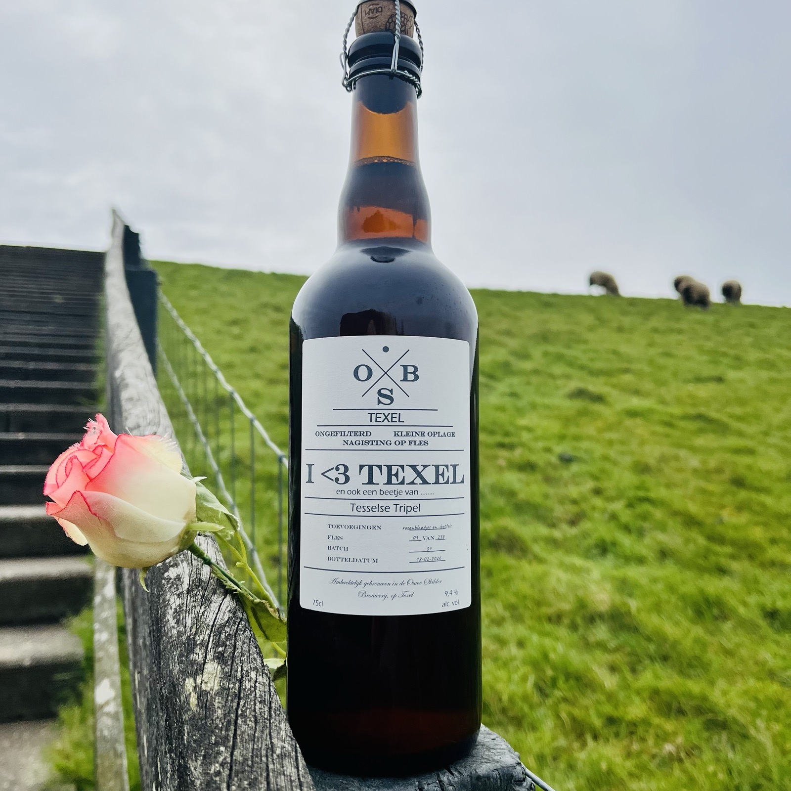 Deze goudkleurige Tripel is gebrouwen met tarwe, haver en gerst. Maar ook met veel liefde, rozenblaadjes en -bottels. Dit komt vooral terug in de geur, die aangenaam fris en bloemig is. Hij smaakt zacht en fruitig, met een subtiele kruidigheid en een hint van rozen. Dus proost! Op de liefde, op Texel en op elkaar!