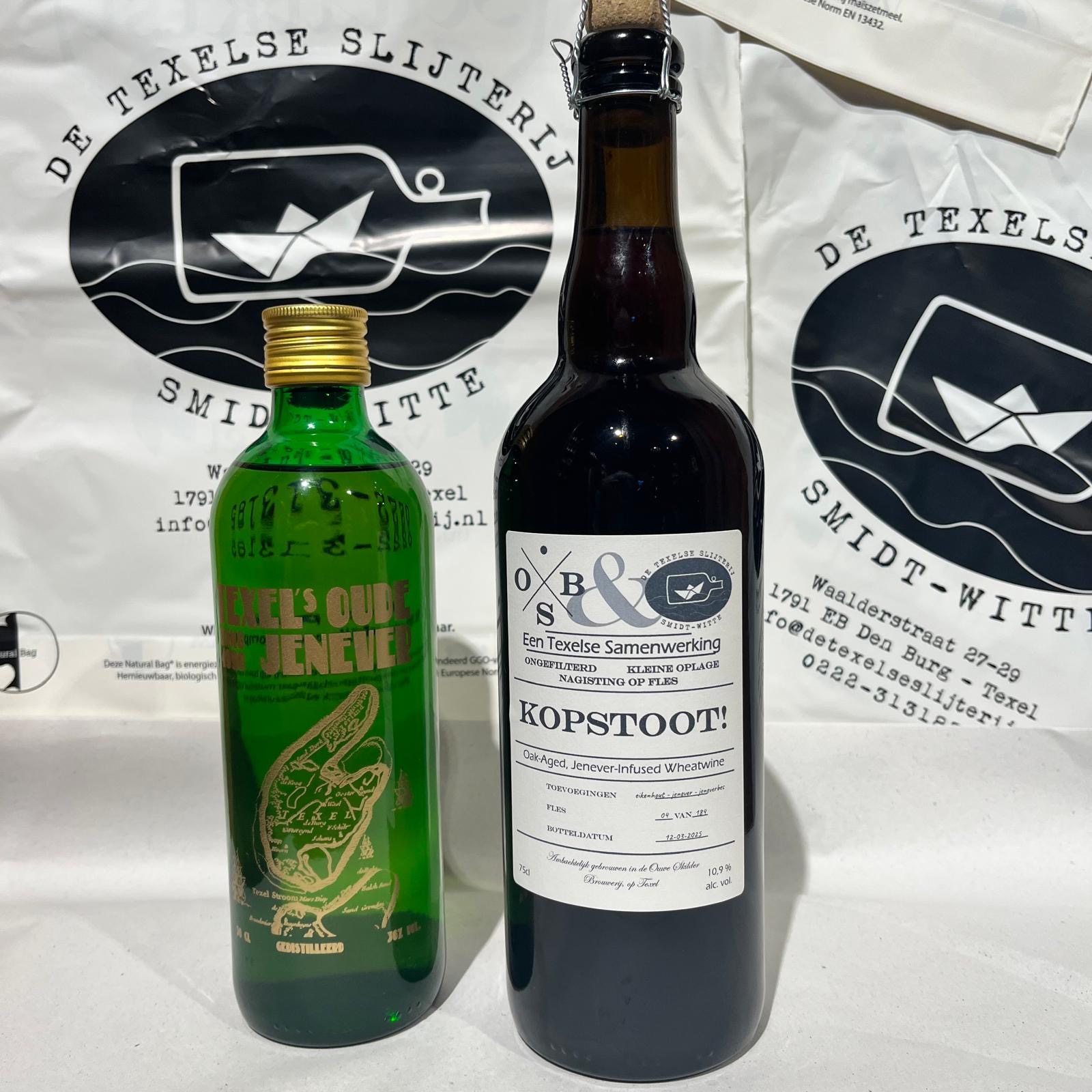 Bier en jenever, een perfecte combinatie. Deze robijnrode wheatwine is verrijkt met de oude huisjenever van de Texelse Slijterij. Vol van smaak: karamel, gedroogd fruit, veel tarwe en dan jenever met eikenhout. Een echte Kopstoot! Maar dan wel een zeer aangename.
